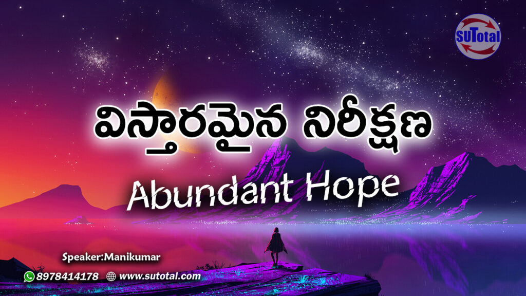 విస్తారమైన నిరీక్షణ. క్రీస్తునందు నిరీక్షణ నుంచినవారు ఏ విసయములో, ఎంతవరకు నిరీక్షణ నుంచాలి? దేవుడు మన నిరీక్షణను ఏ స్థాయిలో ఆశిస్తున్నాడు? అబ్రాహామునకు ఇస్సాకును ఒక్క సంతానముగా దయచేసి నీవు అనేకమందికి తండ్రివగుదువు అని దేవుదు తనతో వాగ్దానము చేయుటలో పరమార్ధమేమిటి? అబ్రాహాములో ఉన్న విస్తారమైన నిరీక్షణను ఎలా అర్ధం చేసుకోవాలి? యేసుక్రీస్తు ప్రభువు మనకు నేర్పించిన విస్తారమైన నిరీక్షణను గూర్చి మరియు ఈ ప్రశ్నలన్నిటికీ ఈ సందేశములో సమాధానములను తెలుసుకొని విస్తారమైన నిరీక్షణని కలిగి ఉండండి.