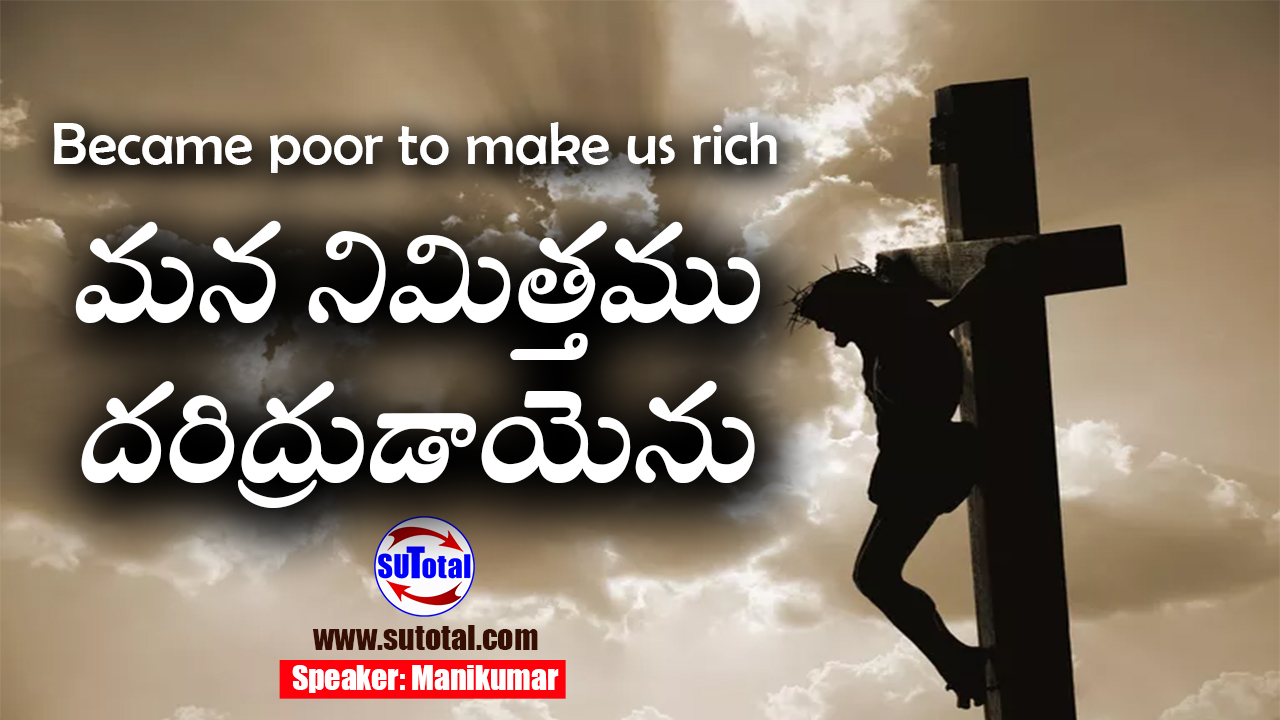 మన నిమిత్తము దరిద్రుడాయెను. దేవుని కుమారుడైన యేసుక్రీస్తు దేవునితో సమానముగా ఉండే మహాభాగ్యమును మన నిమిత్తము విడిచిపెట్టి ఆయన తన్ను తాను రిక్తునిగా చేసికొనెను. క్రీస్తులో ఉన్న ఈ మనస్సు నేడు మనలో ఉన్నదా? ప్రతి సందర్భములోను ఇతరులవలన నేను ఏమి పొందగలను అని ఆలోచిస్తున్నారే తప్ప ఇతరులకు నావలన కలిగే లాభమేమిటి అని ఆలోచిస్తున్నారా? ఈ విలువైన పాఠ్యాంశము ద్వారా దేవుని మనస్సును గ్రహించి దేవుని ప్రేమకు పాత్రులవ్వండి.