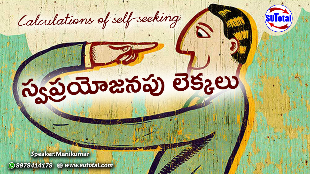 స్వప్రయోజనపు లెక్కలు. స్వచ్చమైన ప్రేమ మనస్సులో లెక్కలు చూచుకోదు. దేవుడు మానవులందరికీ ఈ విలువైన ప్రకృతిని అనుగ్రహించి తన మనస్సులో లెక్కలు చూచుకోకుండా స్వేచ్చగా మన కొరకు అర్పణ చేసాడు. మనము కూడ అట్టి మాదిరిగా ఇతరులను ప్రేమించునప్పుడు మనస్సున లెక్కలు చూచుకోకుండా, స్వప్రయోజనమును ఆశించకుండా దేవుని సేవలో ముందుకు కొనసాగిపోవాలన్నది ఈ పాఠ్యాంశము యొక్క సారాంశము.