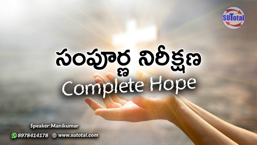సంపూర్ణ నిరీక్షణ. కనిపించేవాటి కొరకు ఎవ్వరూ నిరీక్షించరు. కనిపించనివాటి కొరకే అందరూ నిరీక్షిస్తారు. దేవునియందు మనముంచవలసిన నిరీక్షణ సంపూర్ణమైనదై ఉండాలని, దానిని నెరవేర్చుకొనుట కొరకు మనస్సును కట్టుకొని, నిబ్బరమైన బుద్ధిని కలిగియుండాలని తెలియజేసే ఈ సందేశమును విని, దైవజ్ఞానమునకు పాత్రులవ్వండి.