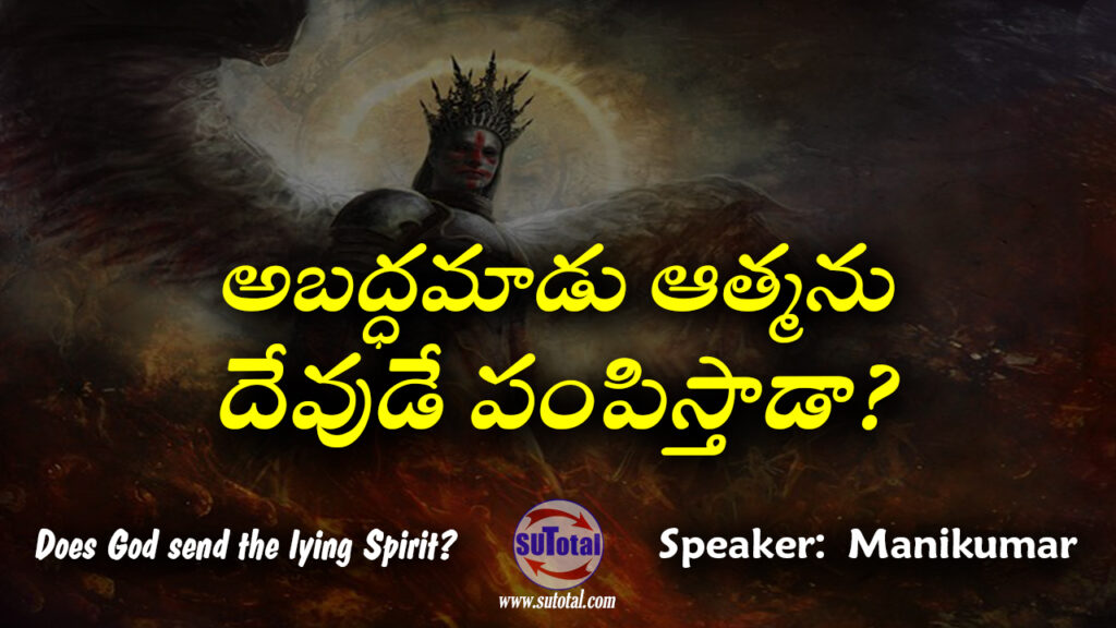 అబద్ధమాడు ఆత్మను దేవుడే పంపిస్తాడా? ఈ లోకములో మన చుట్టూ మంచి ఉంది, చెడూ ఉంది. మంచిని దేవుడు సృష్టించాడని, చెడును సాతాను సృష్టించాడని చాలా మంది భ్రమిస్తారు. సర్వమునకు, సకలమునకు దేవుడే కారణం. మనలో ఎవరు పరలోకము కొరకు యోగ్యులో నిర్ణయించుటకు దేవుడు మన యొద్దకు అబద్ధమాడే ఆత్మలను కూడా ఏలాగు పంపిస్తాడో అనే విషయాన్ని చక్కని ఉదాహరణలతో ఈ పాఠ్యాంశము ద్వారా తెలుసుకొనగలరు.