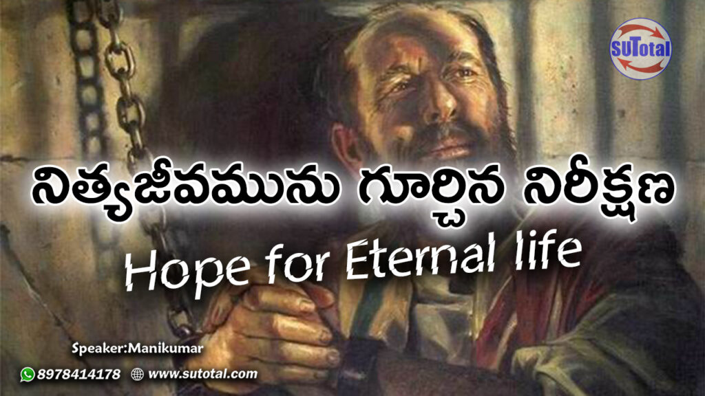 నిత్యజీవమును గూర్చిన నిరీక్షణ. దేవునియందు ఏ నిరీక్షణతో మనిషి తన భక్తిని కొనసాగించుచున్నాడు? పరిశుద్ధ గ్రంథములో మనిషి దేవునియందుంచవలసిన నిరీక్షణ ఏ విధమైనదిగా ఉండాలని వ్రాయబడినది? ప్రారంభ శతాబ్ధపు అపొస్తలులు, శిష్యులు ఎటువంటి నిరీక్షణను దేవునియందుంచారు? మనకు దేవుడు పరిశుద్ధాత్మను ఎటువంటి నిరీక్షణ నిమిత్తము అనుగ్రహించును? ఇటువంటి ఆత్మ సంబంధమైన ప్రశ్నలకు దేవుని దివ్యమైన సమాధానములను ఈ పాఠ్యాంశము నుండి పొందగలరు.