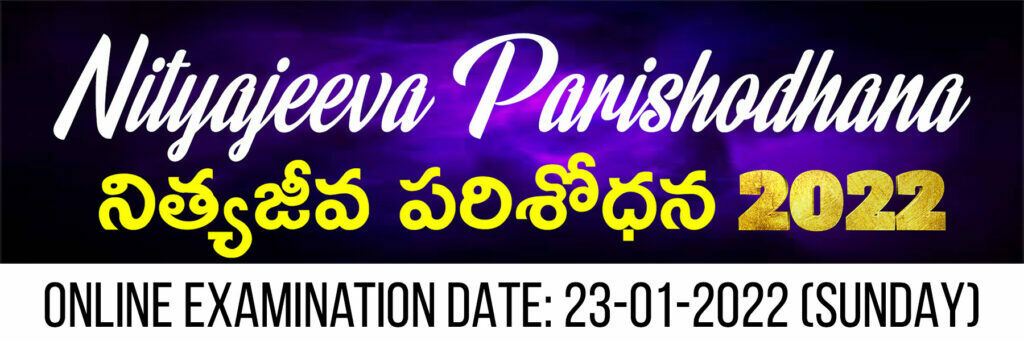 ఏడవ నిత్యజీవ పరిశోధన పరీక్షలు వ్రాయగోరు అభ్యర్ధులు జనవరి 13వ తేది నుంచి మీ వివరములను Scriptures University Android Application లో లేదా NJP Registration Form వెబ్సైట్ నందు నమోదు చేసుకోగలరు. నిత్యజీవ పరిశోధన 2022 పరీక్షా పత్రము నమూన కొరకు ఈ ప్రాక్టీస్ పరీక్షను వ్రాయండి. మరిన్ని వివరములకు మరియు సందేహ నివృత్తి కొరకు 8978414178 ను సంప్రదించండి. ఇందు ముఖ్య వాక్యోపదేశకులుగా స్క్రిప్చర్స్ యూనివర్సిటి ముఖ్య కార్యదర్శి మరియు క్రైస్ట్ చర్చ్ ఆసియ వర్తమానికులు దైవజనులు. మణి కుమార్ గారు ప్రసంగించెదరు.