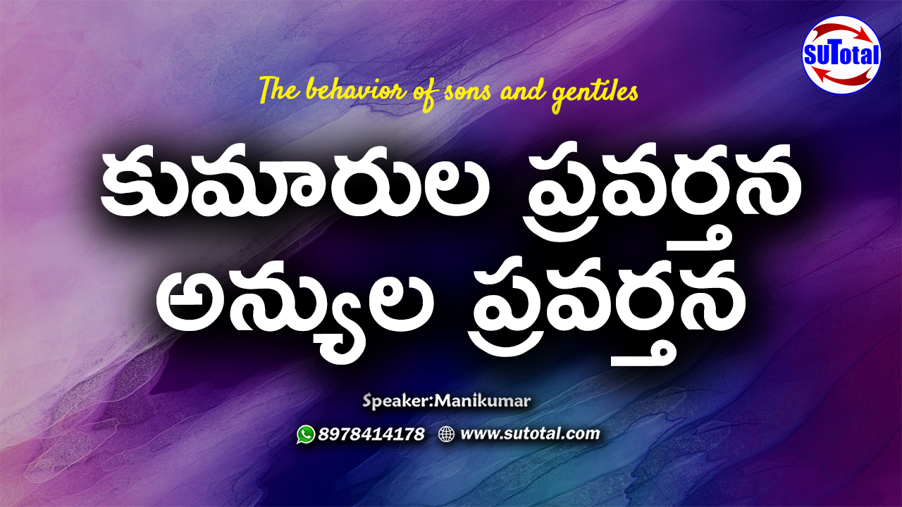 కుమారుల ప్రవర్తన అన్యుల ప్రవర్తన. దేవుడు మనుష్యులందరినీ ఎలాంటి స్వభావముతో బ్రదకాలని కోరుకుంటున్నాడంటే, కుమారుల స్వభావముతో! దేవుని కుమారుడైన యేసుక్రీస్తు ప్రభువు ఈ లోకములో శరీరధారిగా జీవించిన కాలములో దేవునికి కుమారుని స్వభావముతో ఎలా జీవించారో పరిశుద్ధ గ్రంథము ద్వారా మనకు అర్ధమవుతుంది. అయితే, నేటికీ నామాకార్ధ క్రస్తవులనేకులు దేవుని భక్తి ముసుకులో పాపమునకు దాసులుగా జీవించుచున్నారు. మనము కుమారులమై, స్వతంత్రులమై, జ్యేష్ఠులమై, నీతిమంతులమై పరలోకమును ఏలాగు స్వతంత్రించుకోవాలో తెలియజేసే అత్యంత కీలకమైన సందేశమిది.