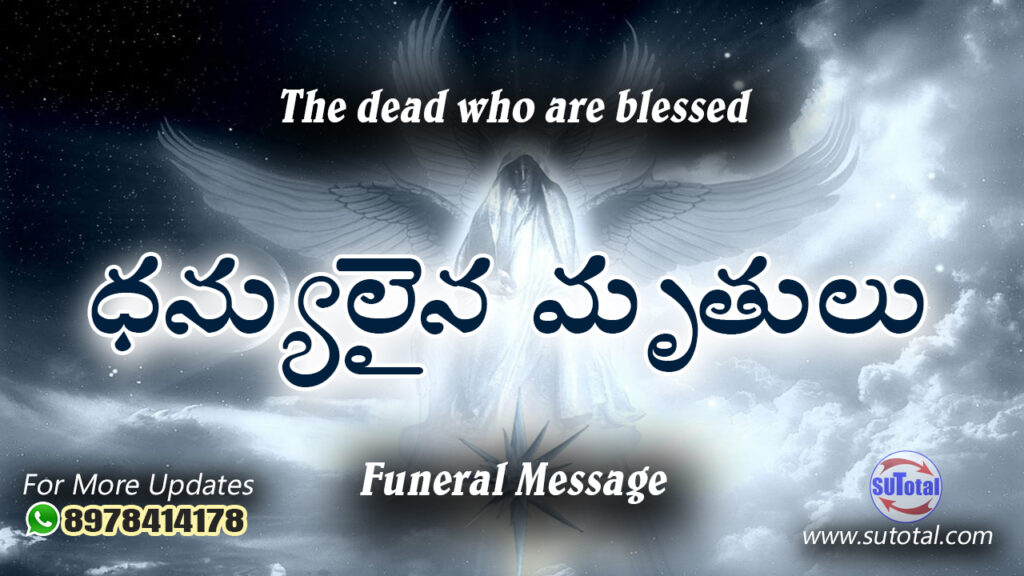 ధన్యులైన మృతులు. ఈ లోకములో మనుష్యులు బ్రదికుండగా వారు లోకసంబంధమైన విషయాలలో రాణిస్తే అట్టి వారిని ధన్యులని చెబుతారు. ఇట్టివారు మరణిస్తే వారిని కూడ ధన్యులంటారు గాని అది కేవలం మానవ ఆలోచనతో మాత్రమే. అయితే, దేవుడు మనుష్యులలో కొందరు మరణించినప్పుడు వారిని ధన్యులు అంటున్నాడు. ఈ విషయము దైవగ్రంథములో వ్రాయబడినది. ఎలా బ్రదికి మరణించిన వారిని దేవుడు ధన్యులంటున్నాడో, వారికి ఆ ధన్యత ఏ విధముగా లభిస్తుందో తెలుసుకునే అత్యద్భుతమైన పాఠ్యాంశమిది!