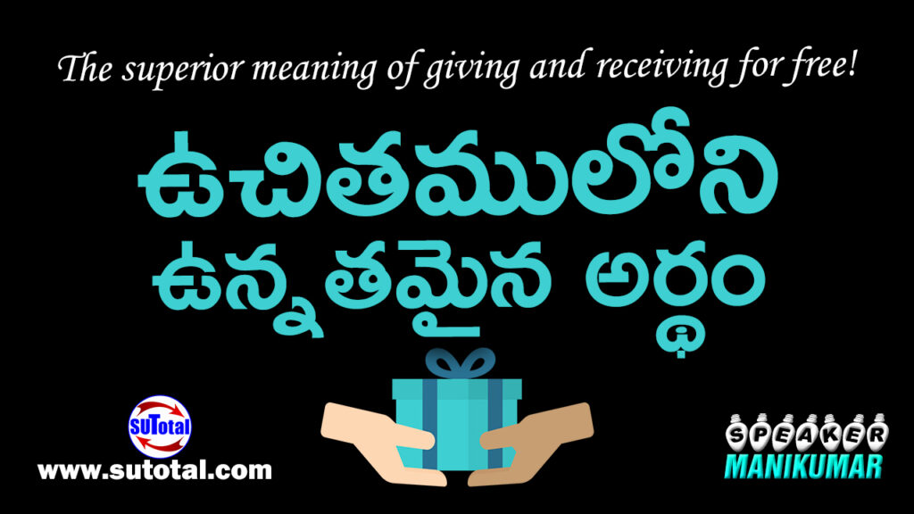 ఉచితములోని ఉన్నతమైన అర్థం. ఉచితముగా ఏదైనా దొరికితే ఏ ఒక్కరూ కాదనరు. ఈ లోకములో ధనవంతులకు కూడ ఉచితము పట్ల మక్కువ ఎక్కువ. అసలు ఏదైనా ఎవరికైనా ఉచితముగా ఎందుకివ్వాలి? దేవుని జ్ఞానముననుసరించి సంగతులను నేర్చుకునే వారికి ఏ సందర్భములో ఎవరు దేనిని ఉచితముగా పొందాలో అర్థమవుతుంది. దేవుని జీవవాక్యములోని ఆత్మలను రక్షించే మహాజ్ఞానమును కూడ ఉచితముగా పొంది, ఇతరులకు ఉచితముగా ఇచ్చే స్థాయిని ఏలాగు పొందవలెనో ఈ పాఠ్యాంశము ద్వారా నేర్చుకొనగలరు.