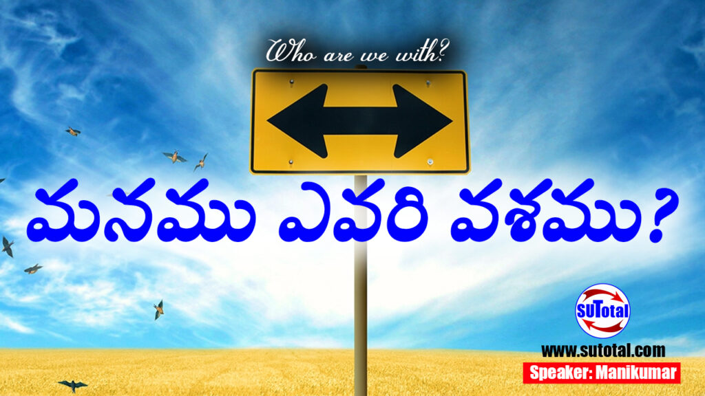 మనము ఎవరి వశము? మనిషి అయితే దేవునివైపు అయినా ఉండాలి లేక దయ్యమువైపు అయినా ఉండాలి. ఎవరి వశములో ఉంటే వారికి దాసులౌతారు. ఎవరి వశములో జీవిస్తున్నారో పరీక్షించుకొనుటకు ఈ సందేశము చక్కగా ఉపయోగపడుతుంది. మీరంతా దేవుని వశములోనికి రావాలని ఆశిస్తూ.. వందనములు.