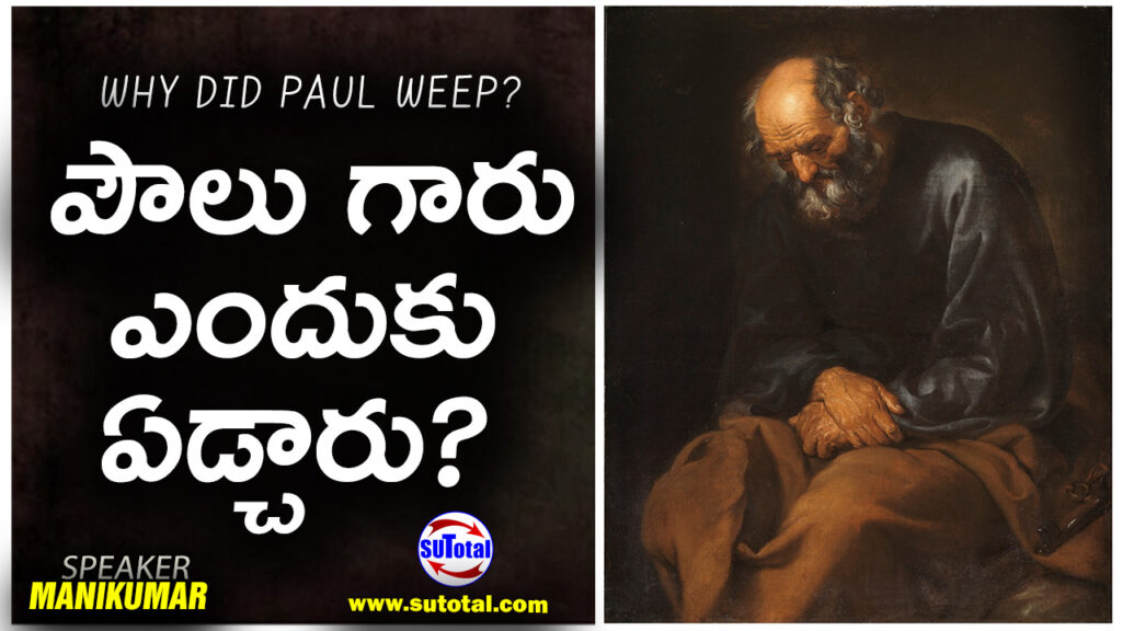 పౌలు గారు ఎందుకు ఏడ్చారు? దైవజనులైన పౌలుగారు ఏడ్చారా? ఆయనకు ఏడ్వవలసిన అవసరత ఏమిటి? లోకములో అందరూ ఎందు నిమిత్తము ఏడుస్తారు? ఆరోగ్యం బాగా లేకపోతేనో, కుటుంబములో కలహాలుంటేనో, నష్టపోతేనో, ఇబ్బందిగా ఉంటేనో ఏడుస్తారు. అయితే పౌలుగారు ఇటువంటి వాటి కొరకు ఏడ్చుట లేదు. మరి పౌలుగారు ఎందుకు ఏడ్చారో ఈ సందేశమును విని తెలుసుకోండి. మీరు కూడ ఒకవేళ ఏడ్వాలంటే కారణము ఈ విధముగా ఉండాలని గ్రహించండి.