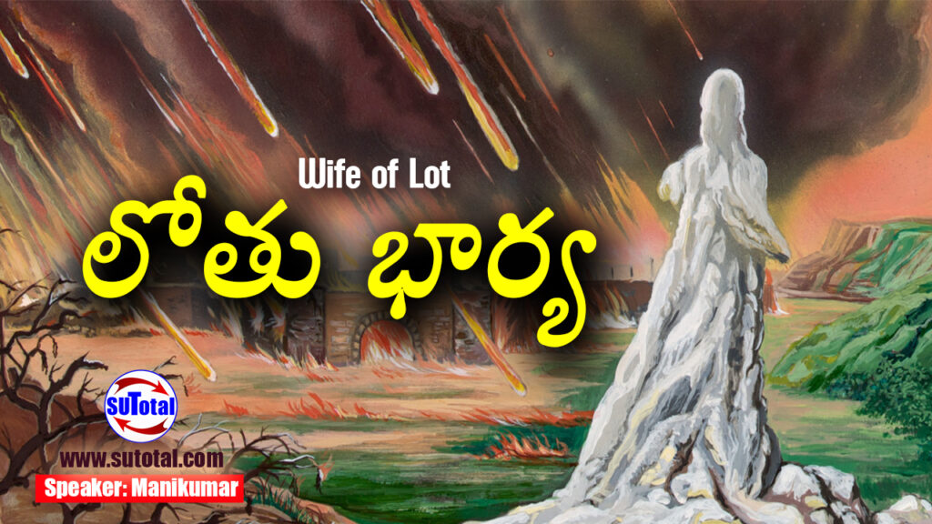 లోతు భార్య. యేసుక్రీస్తు ప్రభువు శరీరధారియై యున్న దినములలో లోతు భార్యను గూర్చి జ్ఞాపకము చేసుకోమన్నారు. లోతు భార్య ఘటన ద్వారా ఈ అంత్యకాలమందున్న మనము నేర్చుకోవలసిన అద్భుతమైన సంగతులతో ఈ సందేశము రూపొందించబడినది. ఆద్యంతం జాగ్రత్తగా విని, నేర్చుకొని మీ ఆత్మీయ జీవితాలను దేవునికి అంకితం చేసుకుంటారని ఆశిస్తూ.. వందనములు.